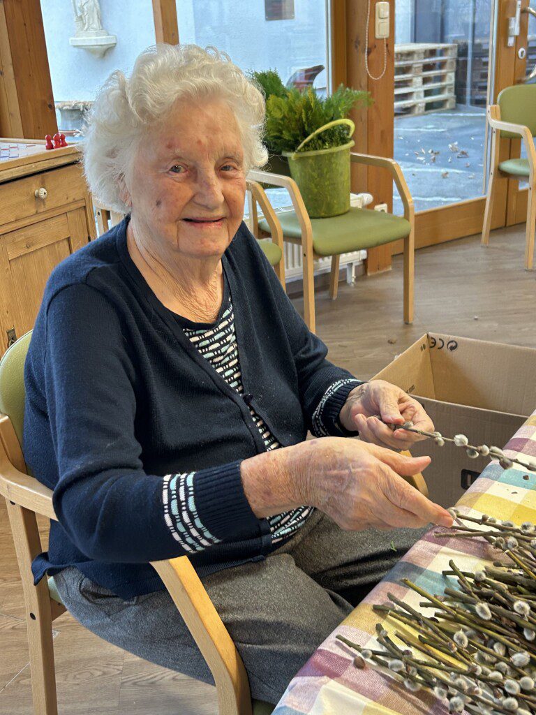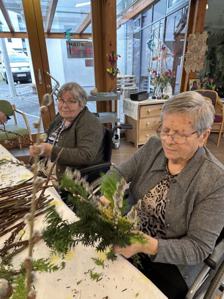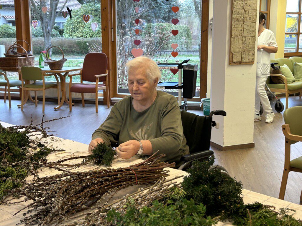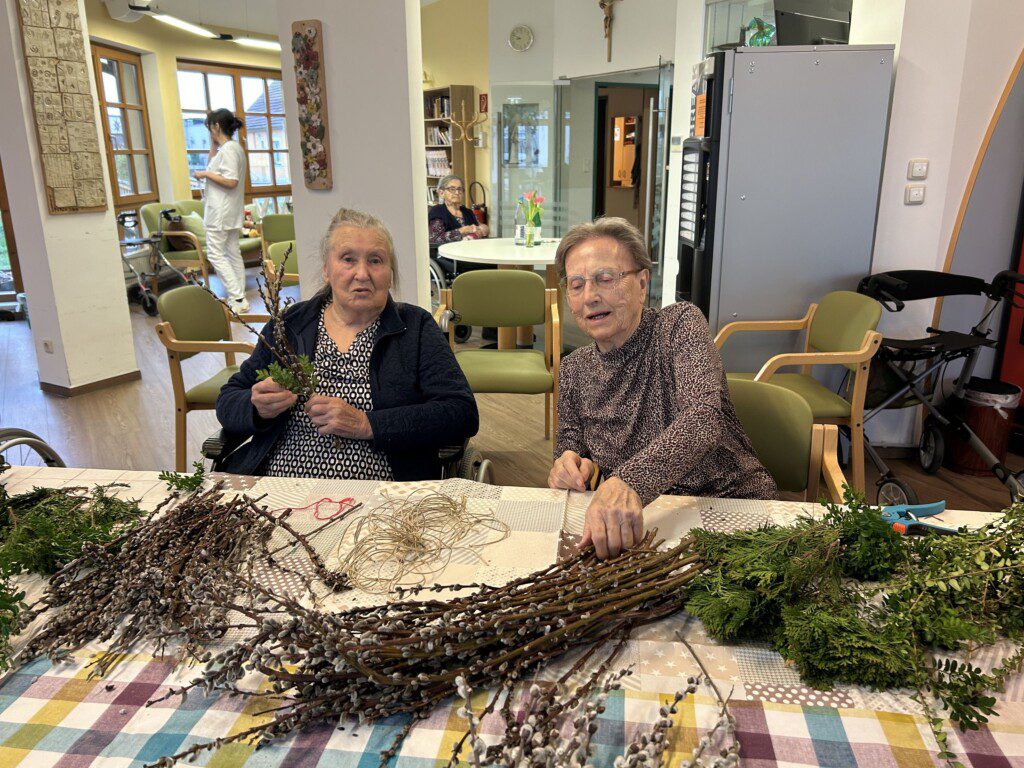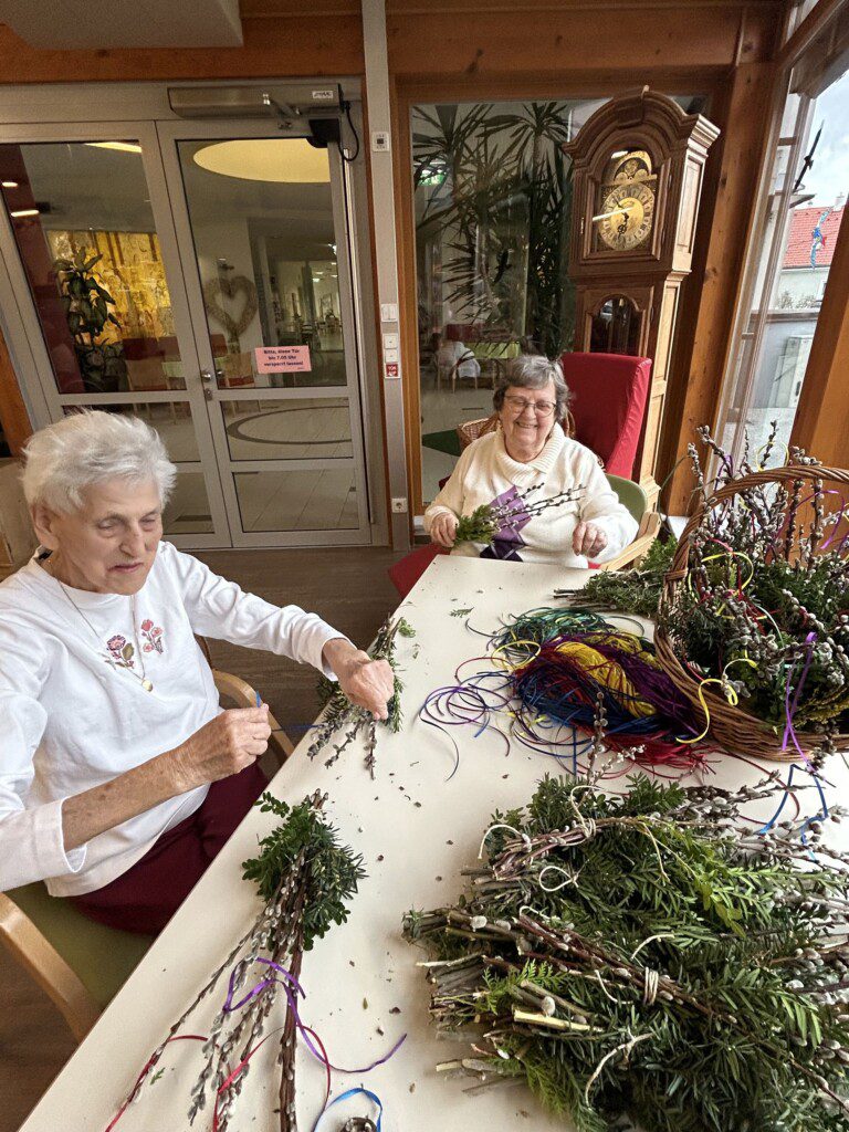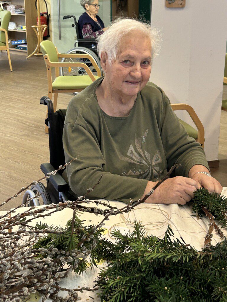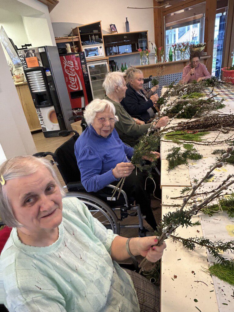 Gerade diese Tätigkeit hat für unsere BewohnerInnen einen besonderen Wert. Viele erinnern sich dabei an frühere Zeiten, in denen das Palmbuschen binden ein fester Bestandteil des Familienlebens war. Diese Erinnerungen fördern Gespräche, stärken das Gemeinschaftsgefühl und geben den Teilnehmenden das Gefühl, etwas Sinnvolles zu schaffen.