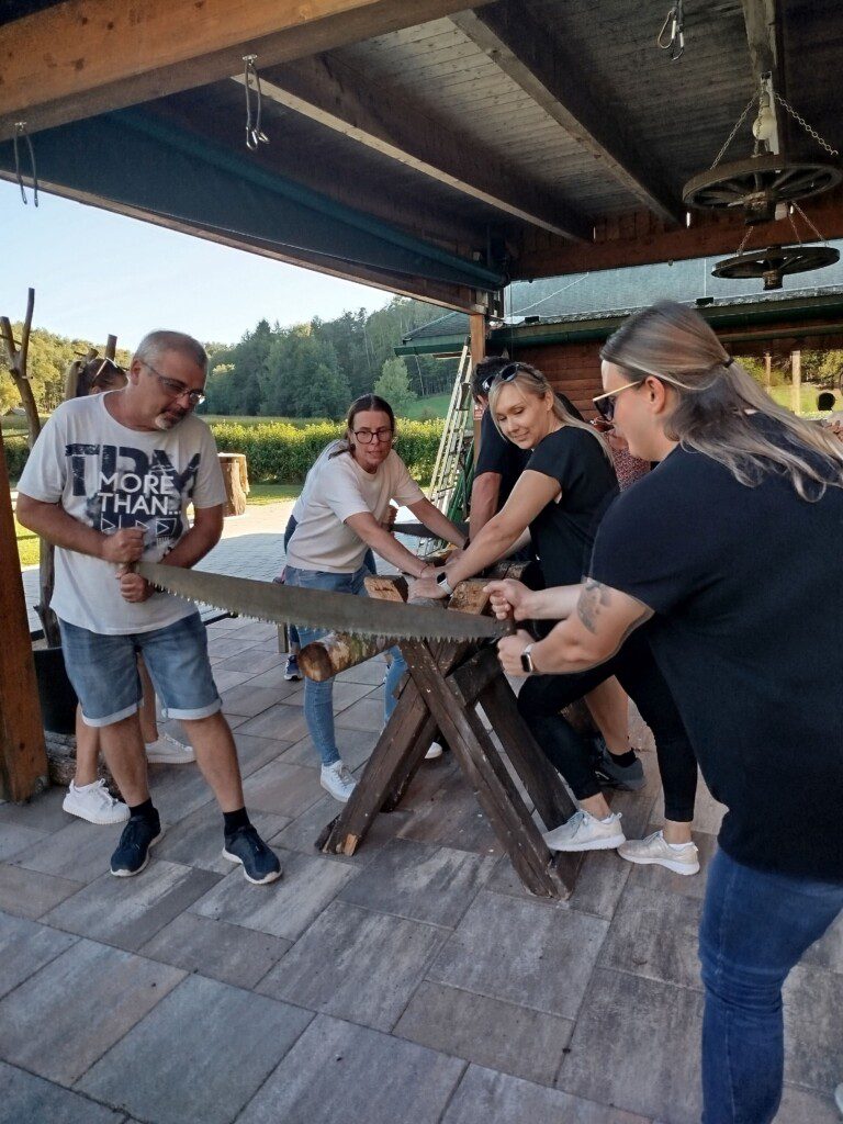 Schlussendlich waren die Ergebnisse der einzelnen Teams so nah beieinander, dass der Sieger anhand eines Säge-Wettbewerbs ermittelt werden musste.