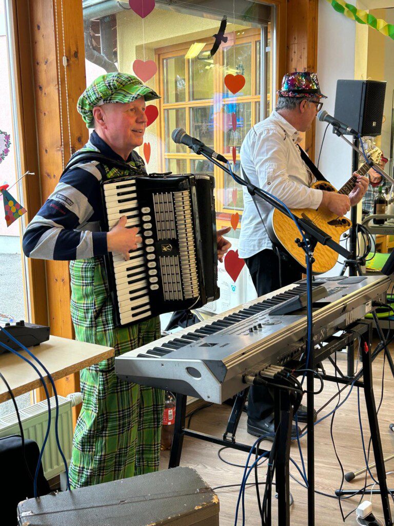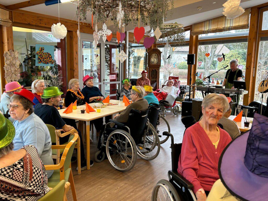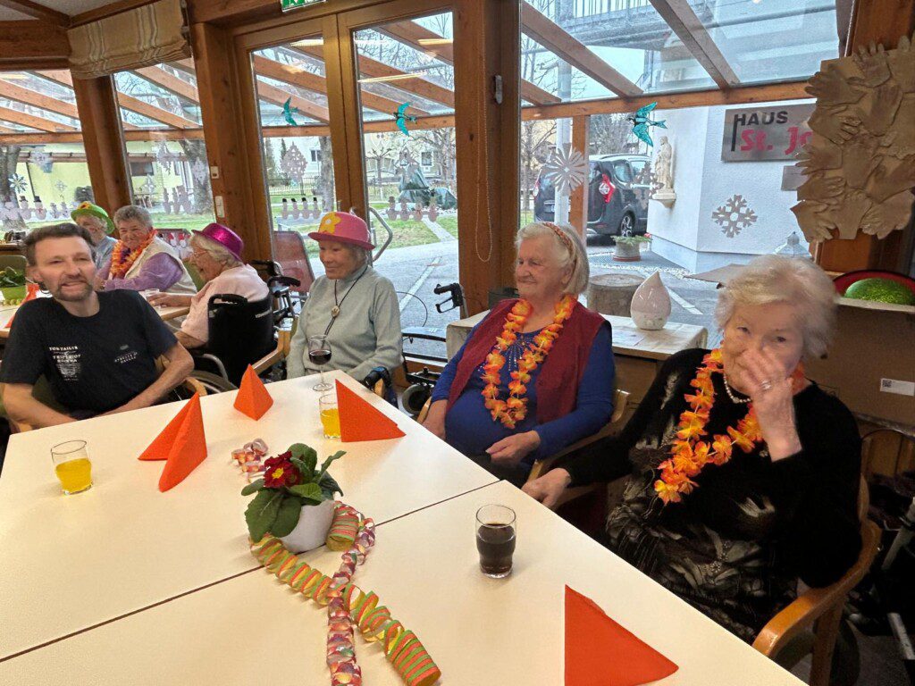 Die BewohnerInnen erschienen mit lustigen Hüten und bunten Blumenketten. Schon nach den ersten Takten bekannter Faschingslieder wurde geschunkelt, mitgesungen und herzlich gelacht.