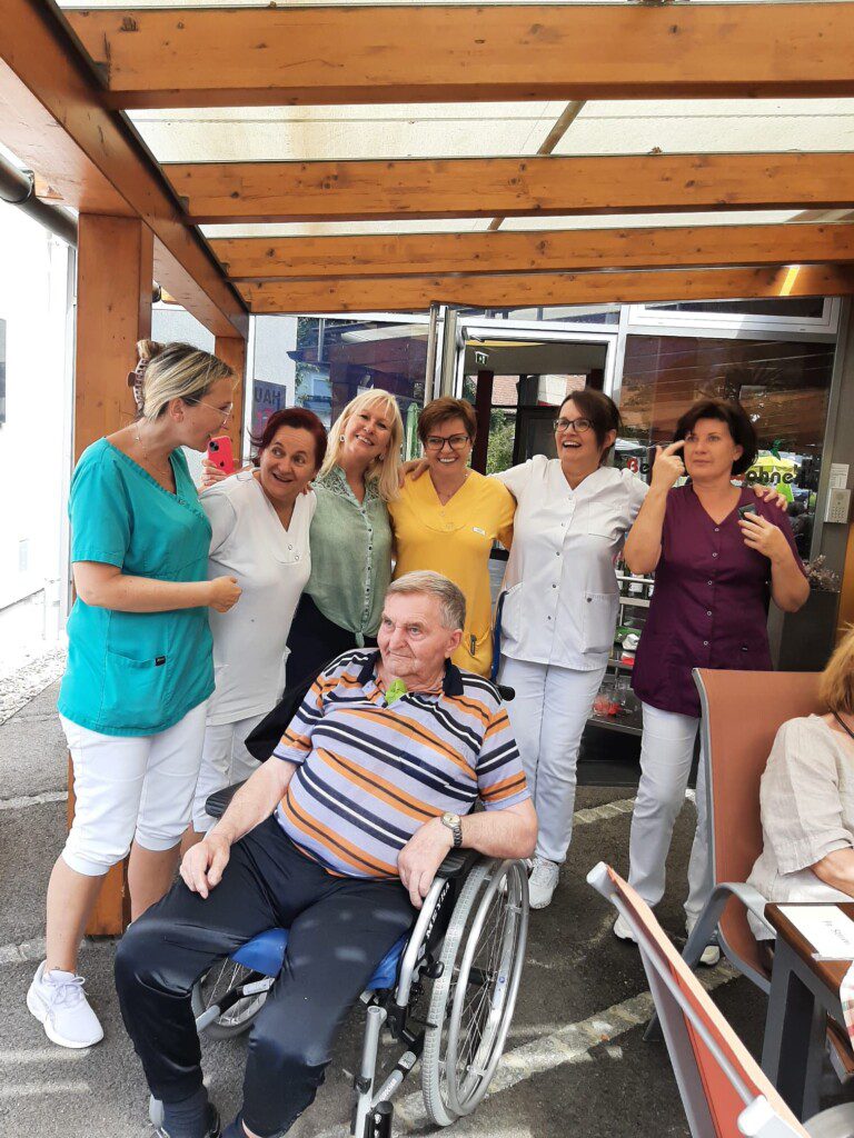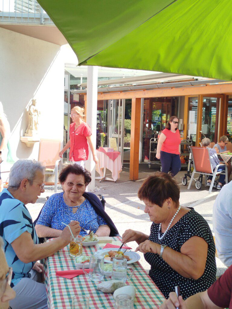 Angelika aus unserer Küche stellte die Hauptspeisen zusammen, unser Personal aus der Pflege servierte diese unseren BewohnerInnen und Gästen.