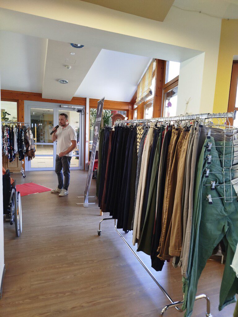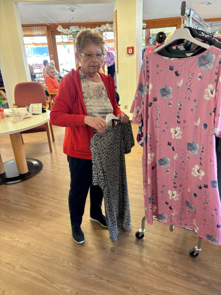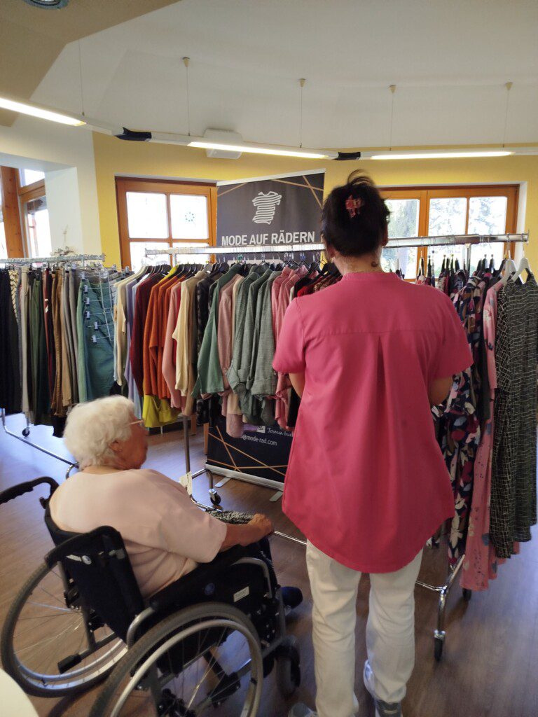 Ein mobiles Modegeschäft, das älteren Menschen den Zugang zur Kleidung erleichtert, war bei uns im Haus.