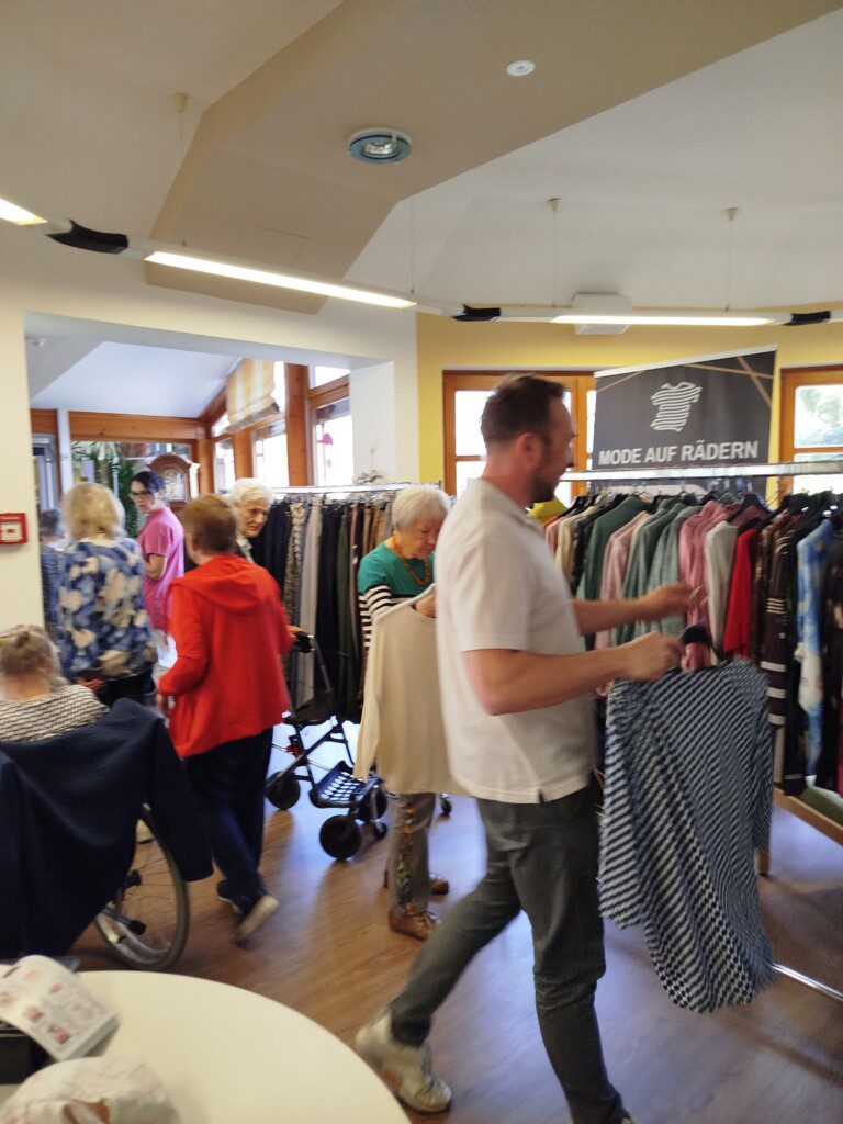 Das Prinzip ist einfach: Das Unternehmen „Mode auf Rädern“ organisiert regelmäßig Modeveranstaltungen direkt im Pflegeheim. Dabei wird eine große Auswahl an Kleidung vor Ort präsentiert – oft in Gemeinschaftsräumen, wo die BewohnerInnen in entspannter Atmosphäre stöbern, anprobieren und einkaufen können.